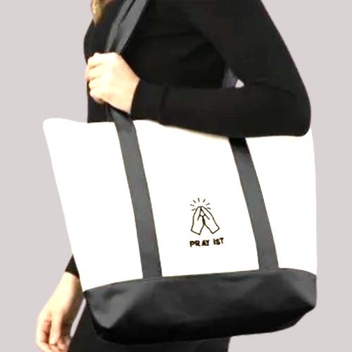 Modern wireless charger for your phone, featuring a bold PRAY 1ST logo on a white background.